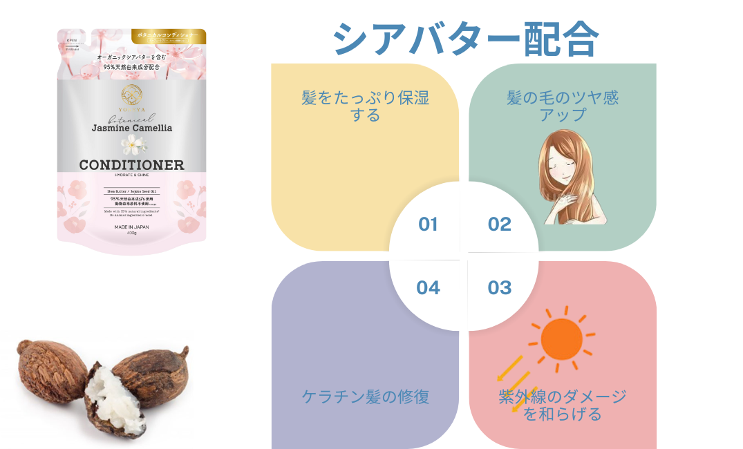 天然由来成分を配合したYONEYAボタニカルシャンプーは、オーガニックシアバターを含み、